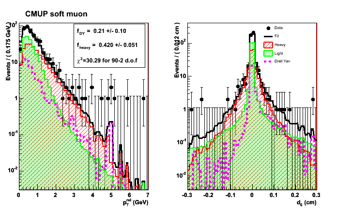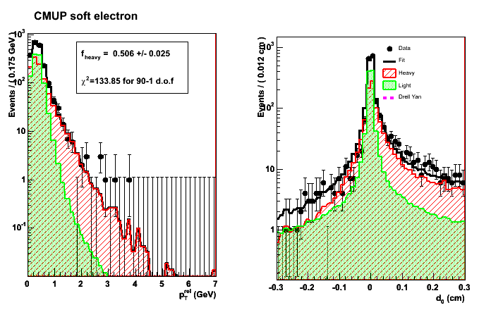 In the post before the previous one, I showed all the soft lepton fits using 3 components. Most of the fits did not converge. At the time, Scott suggested that this was because the templates did not use the high luminosity MC and thus had holes in it. I added the high lumi MC to the templates and there were still convergence problems. The solution was found by using the data-based mistag shape for the light template rather than W+jets MC. The corresponding fits are below. Note that the chisquare is not a real goodness of fit statistic because this is an event-by-event multidimensional fit.