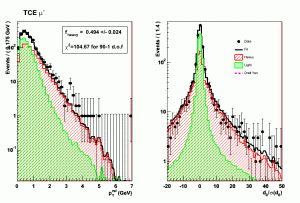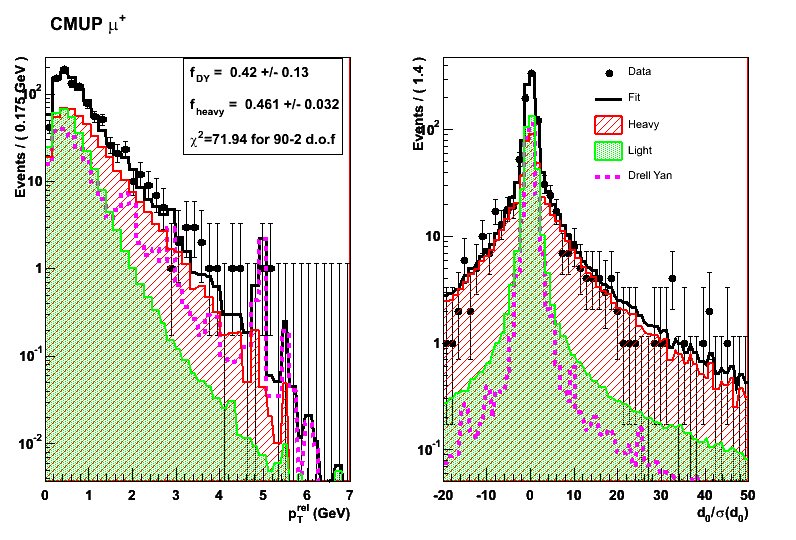 Notice that the error on the fit using the impact parameter significance is always smaller, suggesting that the shapes are better separated in this variable. All plots are below the break.
